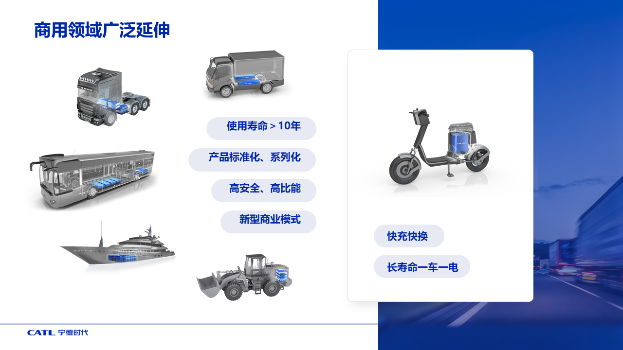 商用领域多数是生产工具,车型复杂多变。针对这一需求,DB视讯开发了长寿命电池,保证高强度运营的质保需要。标准化、系列化设计的电池包有效提高通用性。和产业链合作伙伴共同推出了车电分离、电池或整车租赁等新型商业模式。DB视讯还发现家用和外卖送货骑手的两轮车需求不同,因此设计的电池可快充,也可快换,并且电池寿命足够长,一块电池可以服务车辆全生命周期,节省了更换电池的成本。